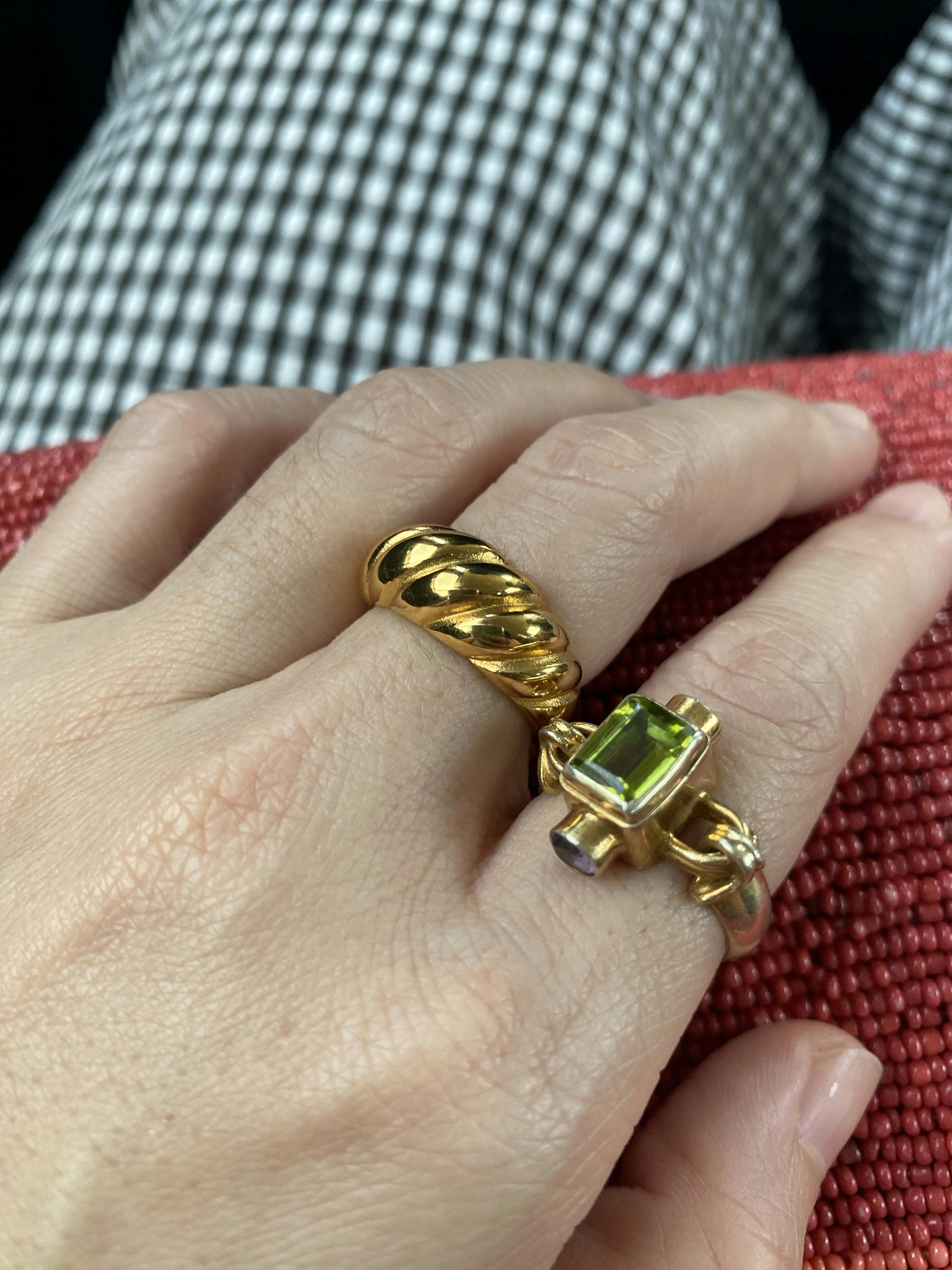 Our Croissant Ring features a chunky twisted band that takes you to Paris. A solid ring for your collection. Easily worn alone as a statement piece or layerable with other stacking pieces