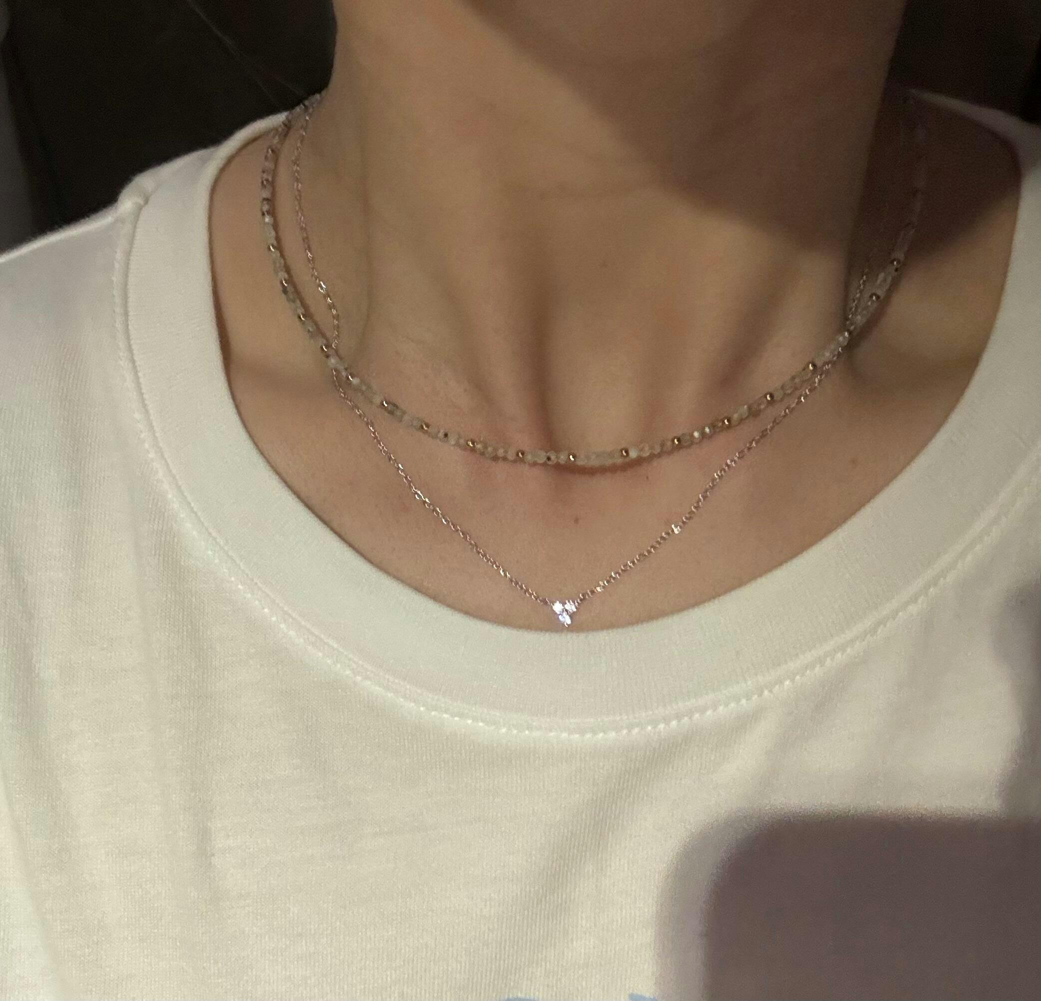 The Smoke necklace is simple with subtle gold and iridescent labrodorite stone details, making it more discreet than on a lot of our Summer Pearl pieces, which makes it a perfect style to combine with more colorful pieces for a truly unique look. Designed with fun under the sun in mind, wear it without worries of tarnishing.